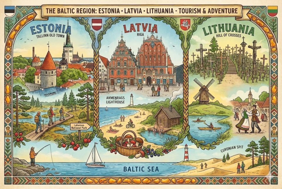 התיירות במדינות הבלטיות מהווה דוגמה מובהקת לגאוגרפיה יישומית, שבה הנוף הפיזי, האקלים והארגון המרחבי מעצבים באופן ישיר את דפוסי התנועה, מסלולי הטיול ואופי החוויה בשטח. התבליט הנמוך, המרחקים הקצרים יחסית והצפיפות הגבוהה של ערים היסטוריות, יערות, אגמים וחופים יוצרים תנאים המעודדים מסלולי תנועה רציפים ותמטיים, ולא תיירות נקודתית הממוקדת באתרים בודדים. הגאוגרפיה מכתיבה את מסלולי הטיול באופן מוחשי: לאורך החופים נוצרים צירי תנועה המחברים ערי נמל, חופים חוליים, לגונות ואיים; בפנים הארץ מארגנים עמקי נהרות ואזורי אגמים מסלולים העוברים דרך נופי יער וחקלאות; והיעדרם של מחסומים טופוגרפיים משמעותיים מאפשר מעבר הדרגתי בין אזורים שונים, ללא קפיצות חדות בנוף או בתחושת המרחב.