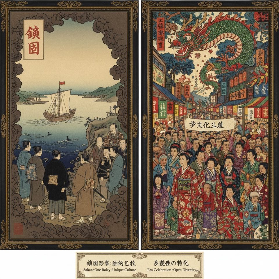 כאשר נפתחה יפן לעולם במאה ה־19' בעקבות הגעת אוניות הקיטור השחורות של הקומודור מאת'יו פרי (1853), היא נאלצה להתמודד עם מפגש מטלטל עם המערב. בתקופת הרפורמות של מֵייג'י (Meiji, 1868–1912), שאפה המדינה להתפתח במהירות תוך שמירה על אחדות פנימית. התשובה לשאלה "מהי יפניות?" הייתה מיתוס האחידות: העם היפני הוצג כצאצאי שבט יאמאטו (Yamato) הקדום, שחי בשלום ובהרמוניה תחת קיסרות אחת. המעמדות בוטלו כביכול – מעתה כולם סמוראים המאמצים את קוד הבושידו (Boshi-Do). מערכת החינוך החדשה חיזקה את הנרטיב הזה, והחדירה את הרעיון שכל אזרח יפן הוא חלק ממשפחה לאומית אחת – "עם אחד, תרבות אחת, שפה אחת".