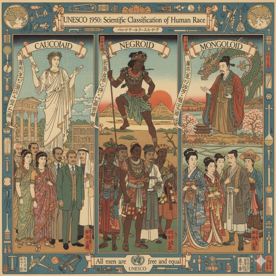 החלוקה של אונסק"ו משנת 1950 הציעה חלוקה של שלושה גזעים בעולם – הגזע הקווקזי, הגזע הנגרואידי והגזע המונגולואידי. (קיימים בנוסף גם הגזעים הבושמני ואאוקייני)