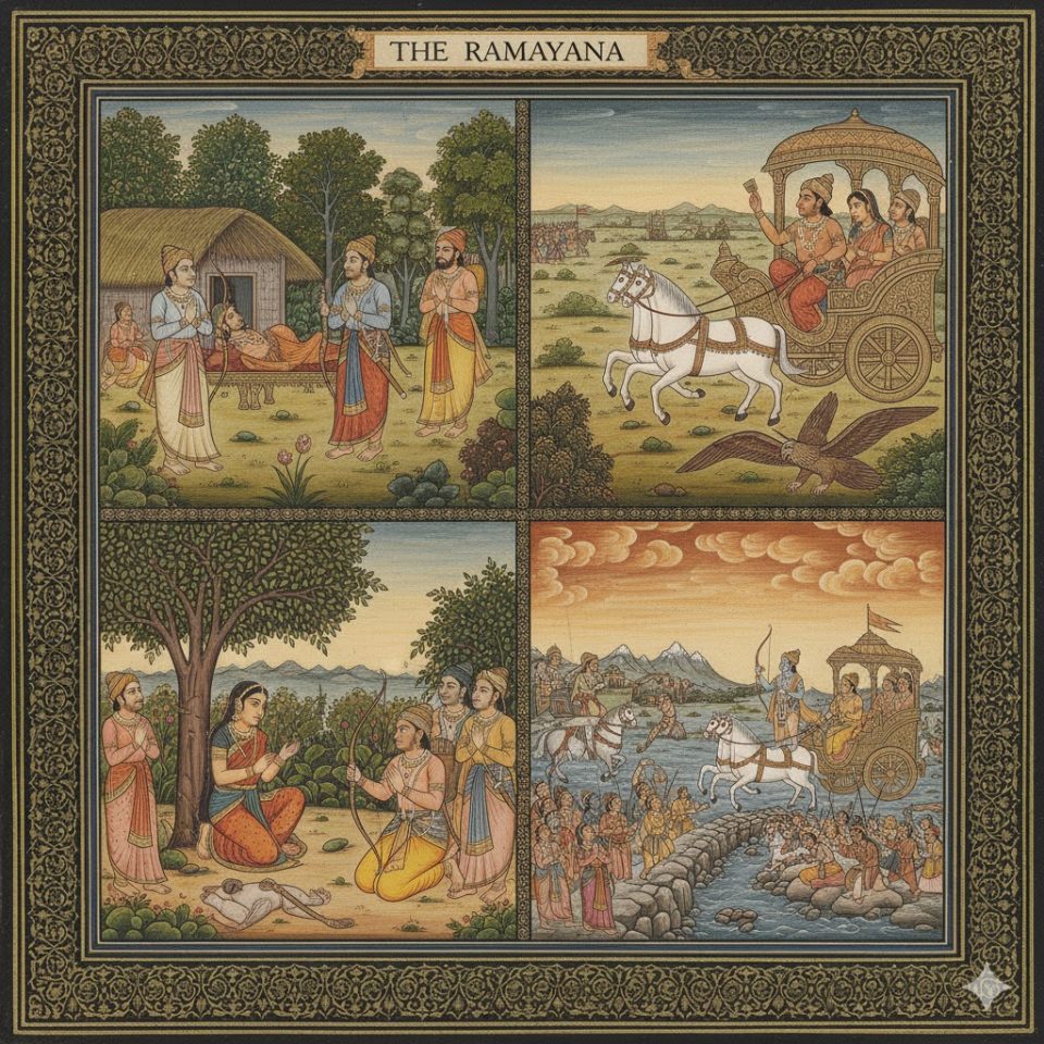הראמאיאנה היא אפוס אחר, קצר בהרבה אך לא פחות חשוב. היא מגוללת את סיפורו של ראמה, גלגול של האל וישנו, היוצא להציל את רעייתו סיטה שנחטפה בידי שד מרושע. זהו סיפור של אהבה, נאמנות, אומץ וציות לחובה, והוא משמש עד היום מודל מוסרי להתנהגות אנושית בהודו. הראמאיאנה אינה רק סיפור מיתולוגי, אלא גם ביטוי לערכים החברתיים העמוקים של התרבות ההינדואית – כבוד, נאמנות, טוהר וצדק.