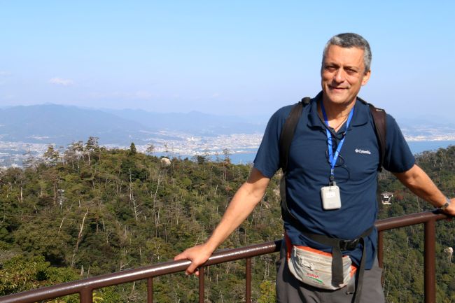 מיקרו קוסמוס של יפן. אי קטן וקסום בים הפנימי, מול חופי הירושימה ובו איילים משוטטים, מקדש שינטו גדול הנראה בזמןה גאות כאילו הואצף בים וכמה מקדשים בודהיסטיים.