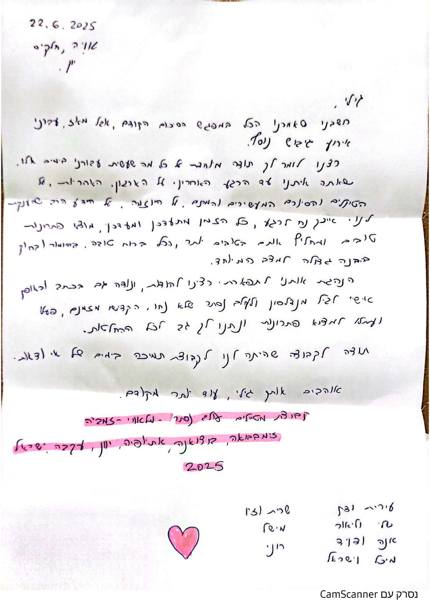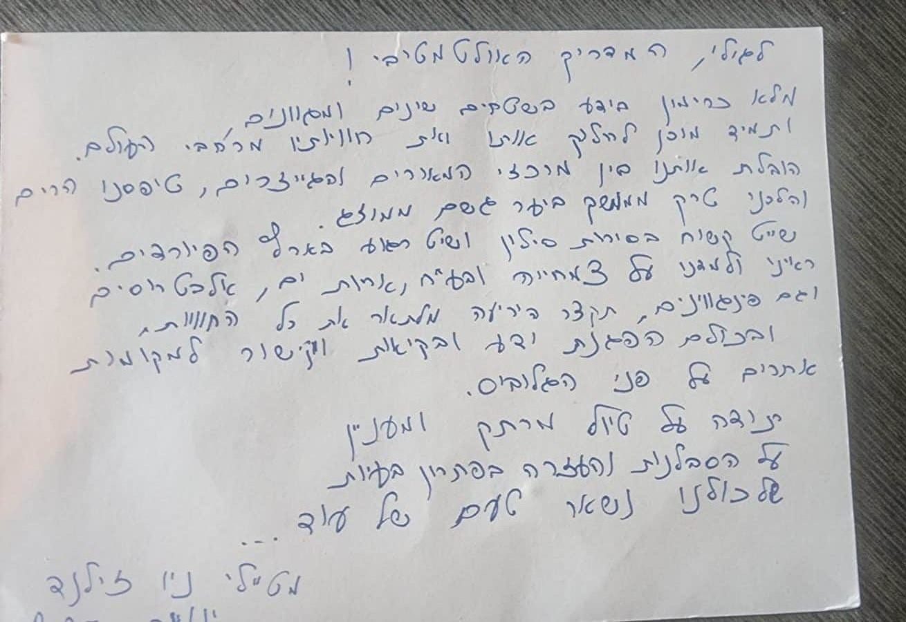 מכתב נוסף מאותם מטיילים בעקבות הנסיבות המיוחדות אליהם נקלעו :
