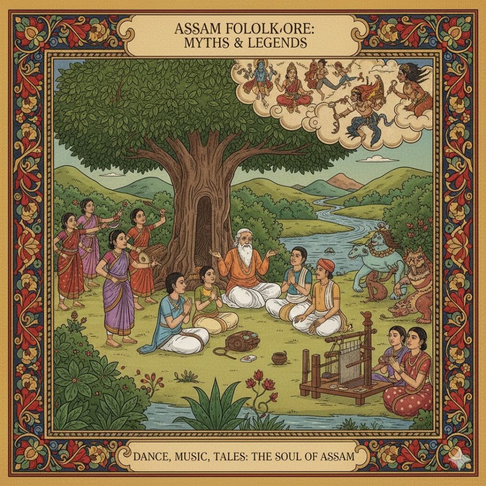 המונח "פולקלור" מציין מכלול של ביטויים תרבותיים העוברים בעל־פה – שירה, ריקוד, מיתוס, טקס, אמונה ואמנות עממית – המשמרים את הזיכרון הקולקטיבי של קהילה ואת דרכי התיווך שלה בין אדם, חברה וטבע. הפולקלור הוא אפוא לא רק אוסף של סיפורים או מנהגים, אלא מערכת תרבותית שלמה, המבטאת את דרכי החשיבה, הערכים והדמיון הסימבולי של החברה שבתוכה היא פועלת. באסאם, שבצפון־מזרח הודו, מערכת זו קיבלה ביטוי יוצא דופן בעושרה וברב־גוניותה [1].