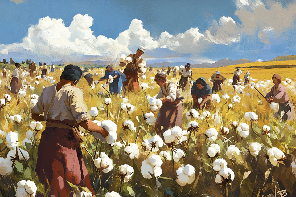 הכותנה, שמקורה בהודו, לא הייתה זרה לאדמות מרכז אסיה. במשך מאות שנים היא צמחה בה באיטיות, בהתאם לאקלים ולקצב המקומי. אך רק עם בואם של הרוסים הצארים במאה ה־19', הפכה לפוליטיקה חקלאית של ממש — מוצר אסטרטגי, "זהב לבן" שנשלח לעבר מפעלי הבדים של סנקט פטרבורג ומוסקבה. אדוני הארץ החדשים ראו בשדות הכותנה מנוע כלכלי, ובאגני הנהרות מקור בלתי נדלה להשקיה. ואז הגיעו הסובייטים, והפכו את האינטנסיביות לדוקטרינה. הכותנה הפכה לעמוד השדרה החקלאי של הרפובליקה הסובייטית האוזבקית, והמדינה נדרשה לספק כמויות דמיוניות ממנה – לא כי היה בכך צורך ממשי, אלא כי זה השתלב יפה בתוכנית החומש.