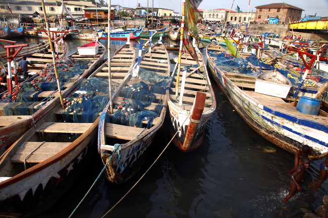 ישבנו לארוחת בקר, מתפעלים מהשלווה וממחירי המזון שהם כפולים בגאנה מאשר בשכנותיה. תוך שעה קלה הצטרף אלינו מדריך מקומי בשם פיליפס, חייכן ופיקח, שתוך רגע הבחנו שהוא מנוסה להפליא. פיליפס הבהיר לנו שמכייון שהוא מקומי, אפשר וכדאי להגיע עמו לכול מקום ואכן הוא הפגין מיומנות במגע עם שיכורים, עם זוג שרב בקול, עם דייגים בעלי מבט אלים ועם רוכלים שקראו לעברינו קריאות גנאי בכול רגע שצילמנו, גם אם לא אותם. יצאנו עמו לכפר הדייגים הציורי שלמרגלות המבצר. לאורך הכביש הלכו נשים רבות כשסלים על ראשיהן. נכנסנו דרך הסמטאות הלבנות, המומים מהצבע ומהיופי. בחוף עצמו נראו סירות דייגים ססגוניות עוגנות בצפיפות ועשרות דייגים מתקנים את רשתות הדייג. במקום מסויים, נערים רוקדו בקצב. מתברר שהם חוגגים לוויה. ממש כך. שמחים לכניסתו של המנוח לגן העדן.