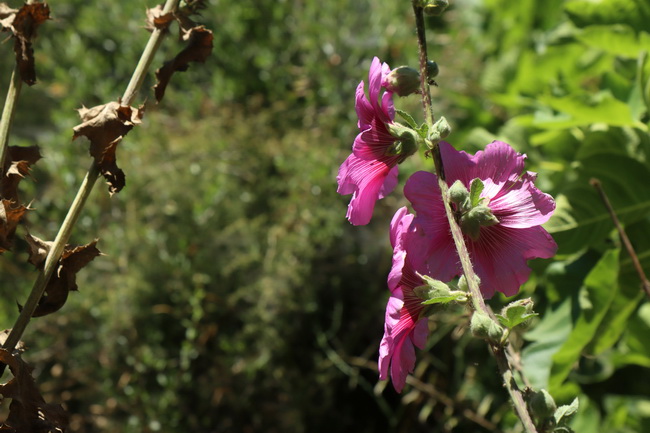 למרגלות המצוקים יש חורש דליל של חברת חרוב מצוי – אלת המסטיק