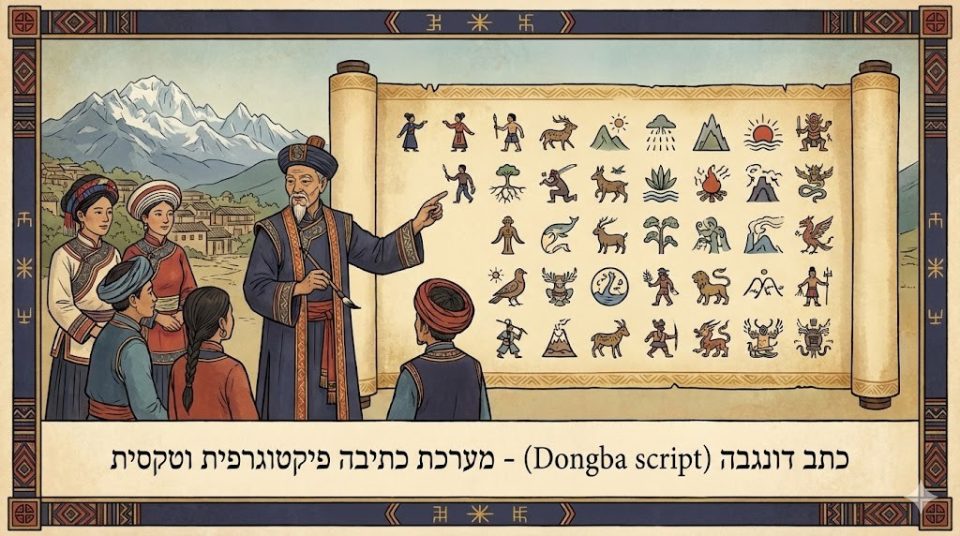 ייחוד לשוני בולט במיוחד קשור לעם הנאשי ולשימוש בכתב דונגבה (Dongba script). זהו כתב פיקטוגרפי וטקסי, הנחשב למערכת הכתיבה הפיקטוגרפית היחידה בעולם ששרדה בשימוש עד העת החדשה. כתב הדונגבה אינו כתב פונטי מלא, אלא מערכת של סמלים ותמונות ששימשה בעיקר כעזר זיכרון לכוהני הדונגבה בטקסים דתיים, מיתולוגיים ושמאניים.
