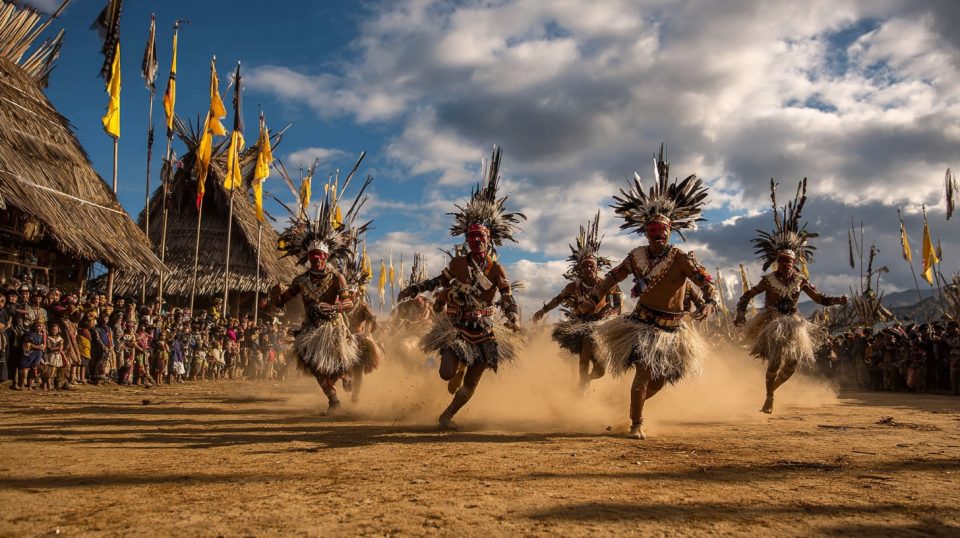 כבר משעות הבוקר מתמלאת רחבת הריקודים בקולות תופים ובקריאות חיזוק. הרקדנים נכנסים אל הרחבה בתלבושות מסורתיות מרהיבות, מעוטרות בשיני חזיר בר, נוצות ציפורים, חרוזים וקעקועים טקסיים. הריקודים אינם מופע בידורי בלבד, אלא שפת גוף המספרת את סיפורם של השבטים: ריקודי ציד המבטאים אומץ ושיתוף פעולה, ריקודי נשים המדגישים את פוריות האדמה ואת הקשר למרחב הביתי, ותהלוכות שבטיות שממחישות מיתוס יסוד, ניצחון בקרב או טקס מעבר.