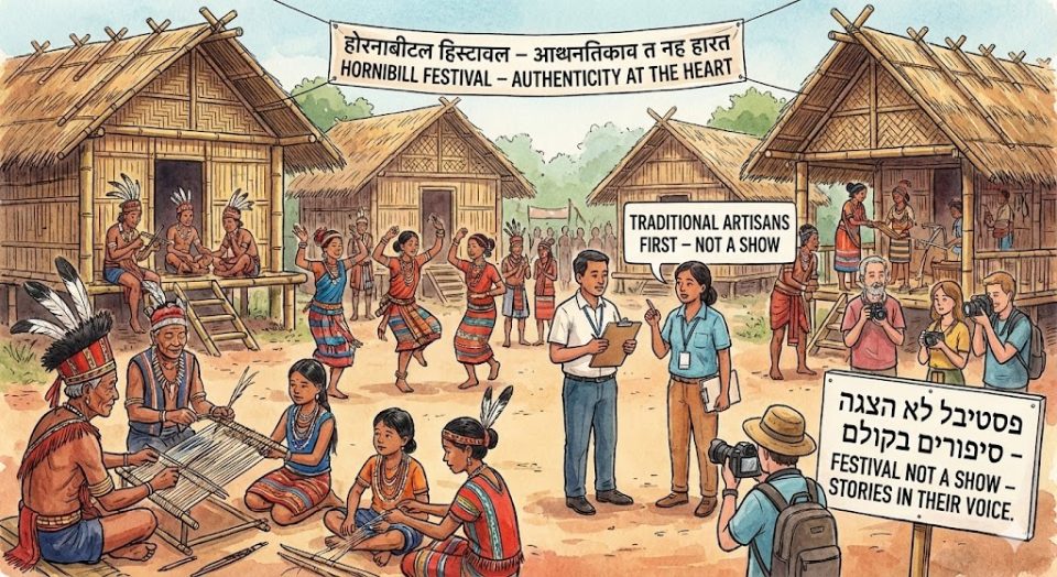 אחד האתגרים הבולטים העומדים כיום בפני פסטיבלים מסורתיים במזרח הודו הוא מציאת האיזון בין הרצון לשמר אותנטיות עמוקה לבין הלחצים הנוצרים מתיירות גוברת. פסטיבל ההורנביל, שהפך לאירוע בינלאומי רב־משתתפים, אינו יוצא מן הכלל. הצלחתו התיירותית מביאה עמה ברכה כלכלית – אך גם שאלה מורכבת: כיצד ניתן לשמור על טקסים עתיקים, מלאכות יד ושפת הגוף השבטית, מבלי שאלה ייהפכו למופע לצורכי תיירות בלבד?