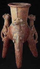 כלי שתיה ופולחן פרה-קולומביאני בעל 3 רגליים מעוצבות בצורת ליאופרדים