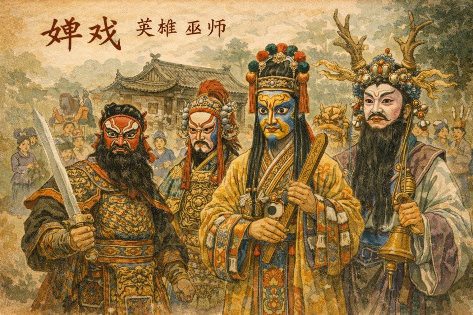 להקות האופרה משתמשות במסכות ססגוניות ובאיפור מודגש, המייצגים דמויות היסטוריות ומיתיות גם יחד. בין הדמויות ניתן למצוא גיבורים מתקופת שלושת הממלכות, לצד כוהני מו – דמויות דתיות מרכזיות בתרבות הבויי, המשמשות מתווכים בין עולם האדם לעולם הרוחות. השילוב בין גיבורים מן ההיסטוריה הסינית הכללית לבין דמויות טקסיות מקומיות יוצר תיאטרון רב־שכבתי, שבו הזיכרון הקיסרי והעולם הילידי מתקיימים זה בצד זה.