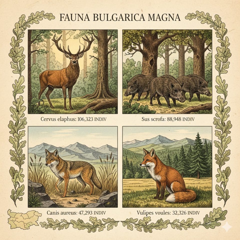 בבולגריה מצויים 93 מתוך 233 מיני היונקים של אירופה, וכן כ־49% ממיני הפרפרים וכ־30% ממיני הצמחים הווסקולריים (צמחים וסקולריים הם צמחים בעלי מערכת הובלה פנימית מפותחת, הכוללת רקמות ייעודיות להולכת מים, מינרלים ותוצרי פוטוסינתזה בין חלקי הצמח. מערכת זו, המורכבת מן העצה והשיפה, מאפשרת קיומם של איברים מובחנים כגון שורש, גבעול ועלים, וכן צמיחה לגובה ולהיקף והסתגלות למגוון רחב של בתי גידול יבשתיים. לקבוצה זו משתייכים השרכאים, חשופי הזרע ומכוסי הזרע, והיא נבדלת מצמחים לא־וסקולריים, כגון טחבים, החסרים מערכת הובלה ולכן מוגבלים בגודלם ותלויים בלחות סביבתית גבוהה) של היבשת. בסך הכול תועדו במדינה 41,493 מיני צמחים ובעלי חיים. בין היונקים הגדולים בעלי אוכלוסיות משמעותיות נמנים איילים (106,323 פרטים), חזירי בר (88,948), תן זהוב (47,293) ושועל אדום (32,326).