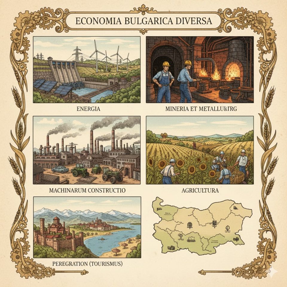 המבנה הענפי של הכלכלה הבולגרית מגוון למדי. בין המגזרים החזקים בולטים תחומי האנרגיה, הכרייה, המטלורגיה, בניית המכונות, החקלאות והתיירות. היצוא התעשייתי כולל בעיקר מוצרי הלבשה, ברזל ופלדה, מכונות ודלקים מזוקקים, והוא משתלב בשרשראות אספקה אזוריות ואירופיות. החקלאות, אף שמשקלה היחסי בכלכלה ובתעסוקה ירד בעשורים האחרונים, נותרה מרכיב מרכזי בנוף הכפרי ובזהות התרבותית של המדינה.