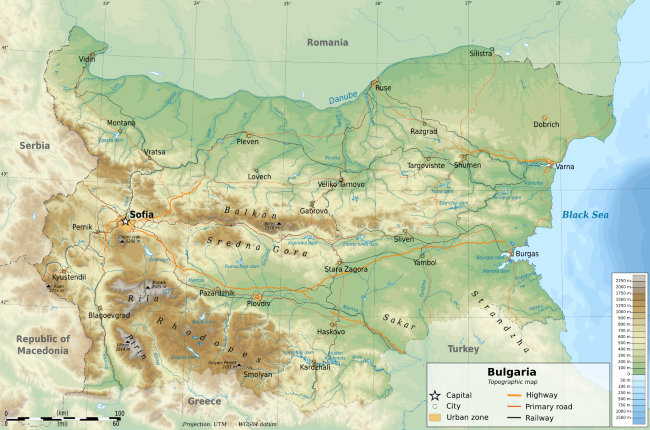 מפה פיסית של בולגריה, באדיבות בולגריה