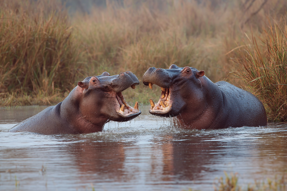 - רק להקות גדולות במיוחד, עם תיאום קבוצתי ותקיפות מתוזמנות, מצליחות להתמודד עם ההגנה האימתנית של ההיפופוטם.