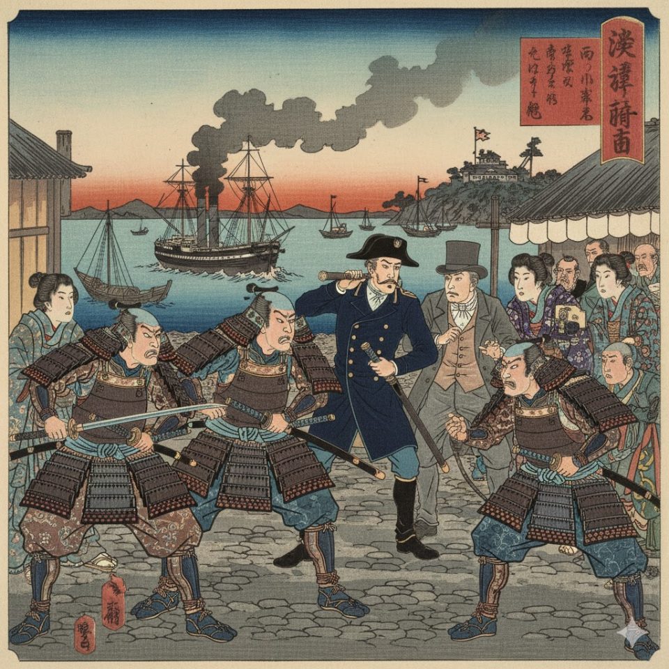 עד אמצע המאה ה־19 הייתה יפן סגורה כמעט לחלוטין בפני זרים במסגרת מדיניות הסַקוֹקוּ (Sakoku) של תקופת טוקוגאווה (Tokugawa). רק סוחרים הולנדים וסינים הורשו לפעול בנמל אחד, בנגסאקי. הסדר זה נשמר יותר מ־200 שנה, עד להגעת הקומודור מתיו פרי (Matthew Perry) עם “האניות השחורות” של ארצות הברית בשנת 1853, ודרישתו לפתוח את שערי יפן לסחר.