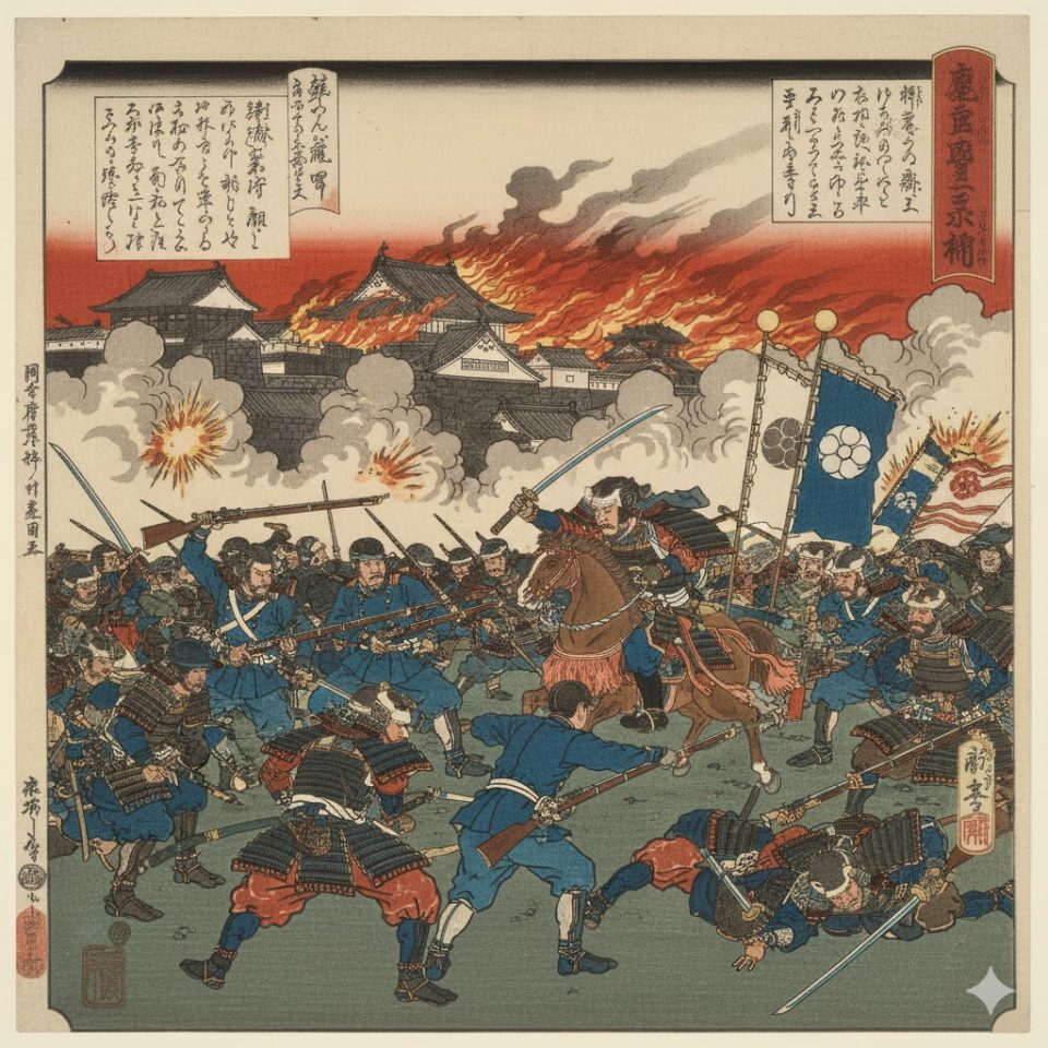 כשהחלה מלחמת בושין, עמדו הסמוראים משני צדי המתרס. בצד אחד – סמוראים מנחלות סאטסומה (Satsuma) ו־צושו (Chōshū), שתמכו בקיסר ובחזון של יפן חדשה ומודרנית; ובצד השני – סמוראים נאמנים לשושלת טוקוגאווה, שניסו לשמור על המסורת ועל הסדר הפיאודלי. באופן אירוני, הייתה זו מלחמה שבה סמוראים נלחמו בסמוראים – אך לא רק על שלטון, אלא על המשמעות של דרכם בעולם משתנה.