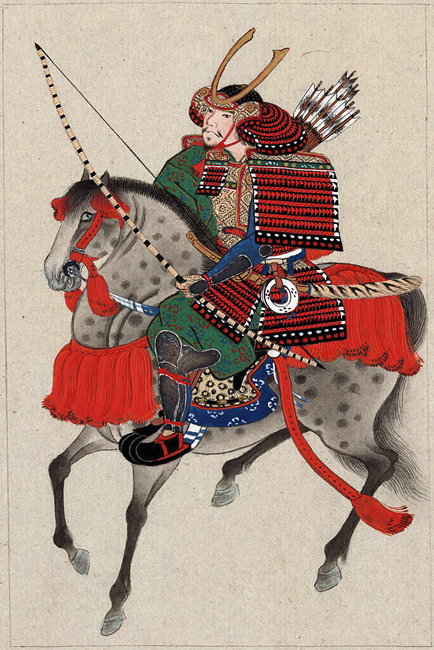 כמו האבירים באירופה, רכבו סמוראים בכירי על סוסים, בעוד שהאחרים היו חיילים רגליים (אשיגארוּ). בצאתו לקרב חבש הסמוראי שריון קשקשים, עשוי מלוחיות פלדה המצופות לכה ומחוברות זו לזו בחבלים צבעוניים. השריון, שהתאים ללוחמה על גבי סוסים כונה אוֹ-יוֹרוֹי.