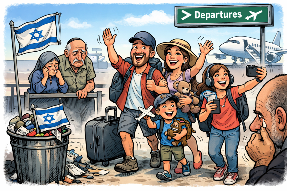 תמיד היו כאלה שעזבו. לפני עשור זו הייתה מחאת המילקי; היום זו הריצה לממ"ד. זה מזכיר לי את הבדיחה על מי שהיה בטלן, וכשהגיע המיתון – נעשה מובטל. למען הסר ספק: לכל אחד הזכות לחיות היכן שיבחר. כבר בשנות השבעים הסתייגתי מאמירתו הבוטה של יצחק רבין – "נפולת של נמושות" – כלפי היורדים. יש לי חברים החיים בקליפורניה, ניו יורק, יוהנסבורג ובנגקוק. איני שופט אותם; אני מכבד את בחירתם. צר לי שהם מותירים אותנו לבד מול האויבים מבחוץ ומבפנים. לו נשארו כאן, אולי היו מסייעים לנו להפוך את הבית הזה לטוב יותר. אך זו בחירתם, וזוהי זכותם.