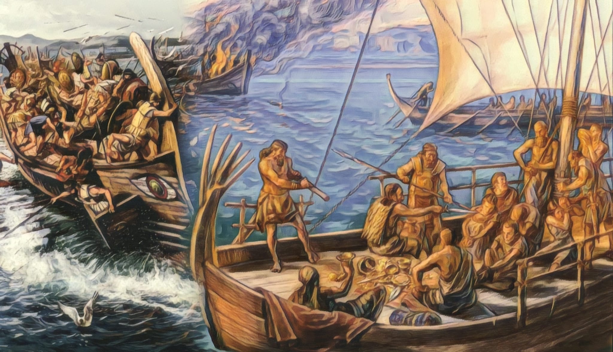 מאות שנים לאחר כתיבת האפוסים ואף יותר מזמן התרחשותם, ההיסטוריון היווני תוקידידס (בערך 460–395 לפנה"ס) כתב שהיוונים מצאו פרנסה בפיראטיות, "שכן בתקופות מוקדמות התפתו ההלנים והברברים של החוף והאיים, ככל שהתקשורת דרך הים הפכה נפוצה יותר, להפוך לשודדי ים… ואכן, זה הפך להיות מקור פרנסתם העיקרי, עדין לא הוצמדה חרפה לתופעה כזו. הישג, אבל אפילו קצת תהילה".