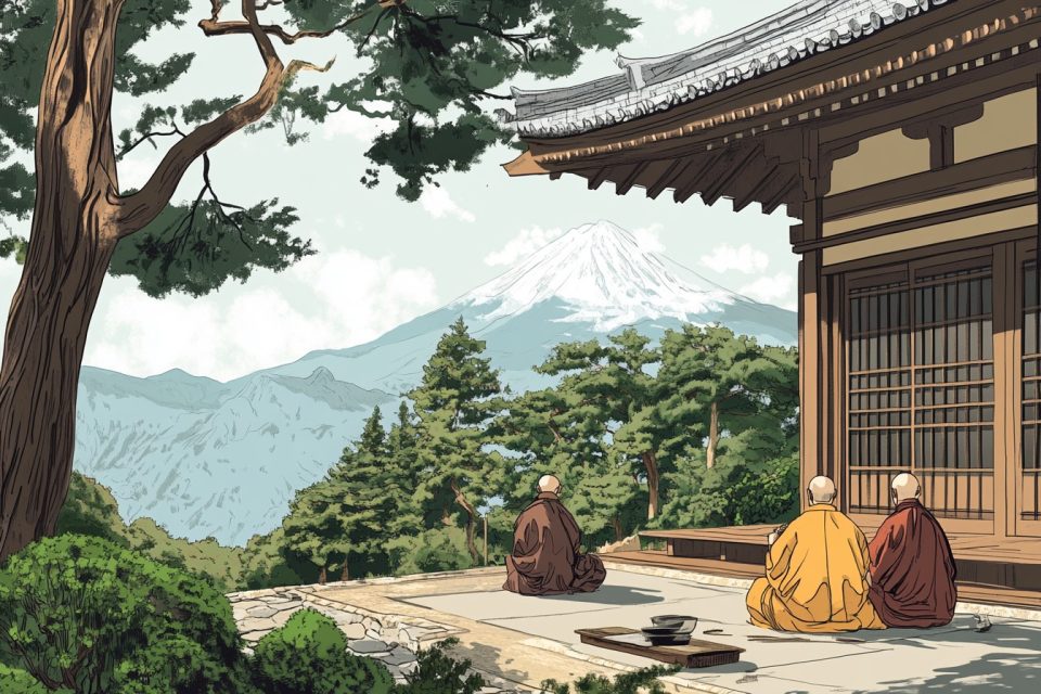 ישיבת הזאזן היא הפעילות המרכזית במנזר. זו ישיבה בלא תנועה, על כרית קטנה, ברגליים שלובות, בגו זקוף, אגודלי ידיים נוגעות זה בזה והעיניים, עצומות למחצה, מביטות בנקודה אחת.. בזמן הישיבה צריך לרוקן את המוח מכול מה שהצטבר בו. משגיח מיוחד מסתובב כדי לבדוק אם כולם יושבים כיאות. אם הוא מבחין במי מבין המודטים שאינו יושב כיאות, הוא גוער בו בצעקה ולעתים חובט בו במקל. מי שזכה בהערה או בחבטה, מודה עליה.
