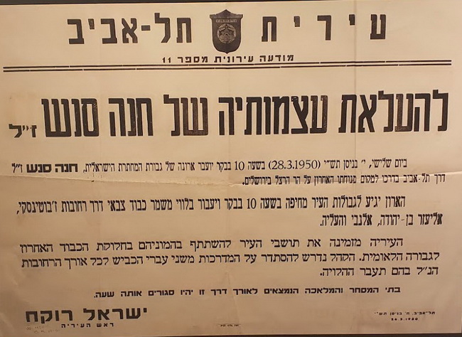[137] יעל גרינפטר, חנה סנש הובאה לקבורה, באתר הארץ, 22 במרץ 2013