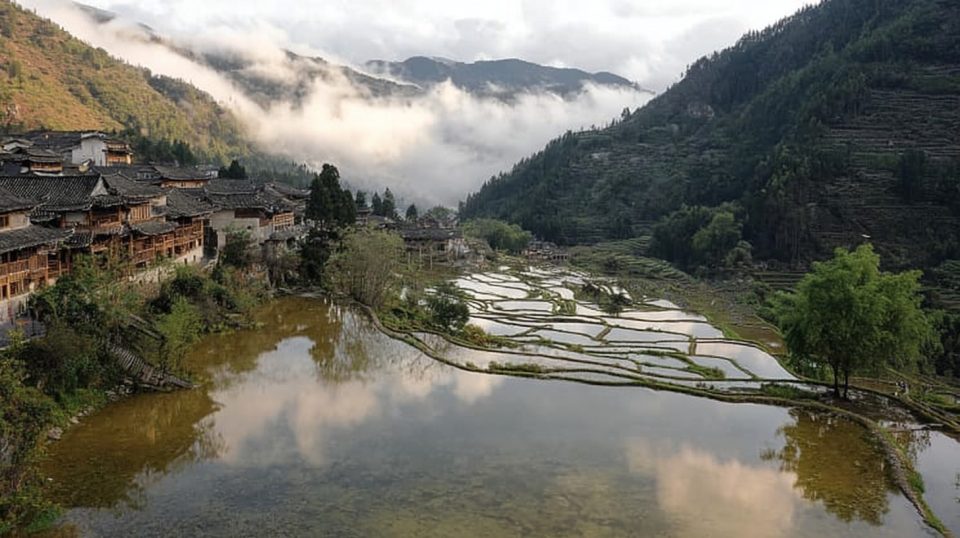 משם מתפתלת הדרך דרומה לעבר אחד האתרים המרהיבים ביותר בעולם – טרסות האורז של יואן יאנג (Yuanyang), אתר מורשת עולמית של אונסק"ו. זהו נוף עוצר נשימה של הרים מדורגים, שעל מדרונותיהם אלפי טרסות אורז נצבעות בגווני זהב, כחול וירוק בהתאם לשמש ולמים. הכפרים של בני מיעוט ההאני (Hani) שוכנים בין הטרסות ומספקים הצצה לחיים מסורתיים של חקלאות עתיקה בת אלפי שנים. בזריחה מעל הכפר דוֹאי שו (Duoyishu) ובשקיעה מעל באדא (Bada) נפרשים מראות של שדות האורז כמראה מהפנטת של שמים ומים.