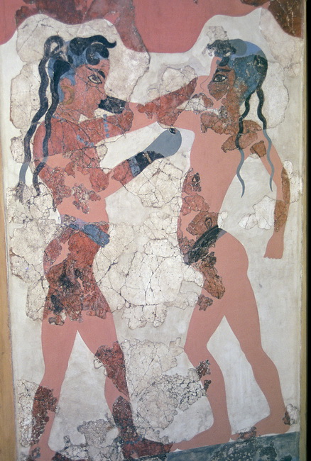אמנות: צמחיים גומא ומוטיבים נילוטיים אחרים – השפעה מצרית. גברים ונשים צרי מותניים. גוף בחזית, פנים בפרופיל. נשים חשופות חזה. ציורי דולפינים. נערים מתגוששים.