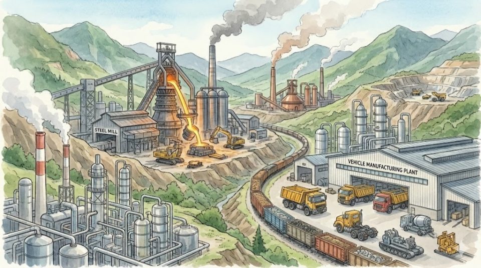 הענפים הכבדים נשענים במידה רבה על כרייה ועיבוד ראשוני של חומרי גלם מקומיים, ולכן מאופיינים ברמות גבוהות של צריכת אנרגיה, שימוש אינטנסיבי במשאבים והשפעה סביבתית ניכרת, במיוחד בתחומי פליטות, זיהום מים ופגיעה בנופים הרריים רגישים. בנוסף, רבות מהפעילויות התעשייתיות במחוז מתמקדות בשלבים מוקדמים של שרשרת הערך, כגון התכה ועיבוד בסיסי, ואינן מלוות בעיבוד מתקדם, מיתוג או חדשנות טכנולוגית רחבה. כתוצאה מכך, רמת הרווחיות בענפים אלו נמוכה יחסית, והם חשופים לתנודות במחירי חומרי הגלם וללחצי רגולציה סביבתית[15].