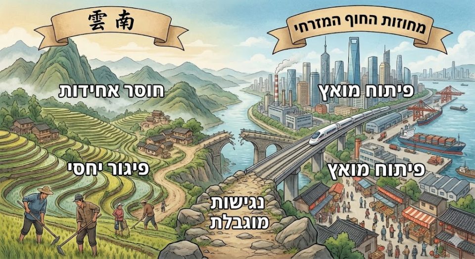 בין רכסי הרים קשים למעבר, עמקים פוריים ונהרות אדירים הזורמים דרומה אל דרום־מזרח אסיה, משתרע מחוז יונאן — אחד המרחבים המורכבים והמרתקים ביותר בסין. זהו אזור שבו חקלאות עתיקה מתקיימת לצד תעשיות כבדות, שבו מחוז שנתפס שנים רבות כפריפריה כלכלית הופך בהדרגה לצומת אסטרטגי אזורי, ושבו תשתיות תחבורה אינן רק אמצעי ניידות, אלא מפתח לשינוי היסטורי. המאמר שלפניכם בוחן כיצד גאוגרפיה קיצונית, משאבי טבע עשירים ומדיניות פיתוח ממלכתית עיצבו את הכלכלה, החקלאות והתחבורה של יונאן — וכיצד שלושה תחומים אלה משתלבים יחד בסיפור רחב של מאבק בבידוד, בניית חיבורים וחתירה למקום חדש במרחב הסיני והאסייתי.
