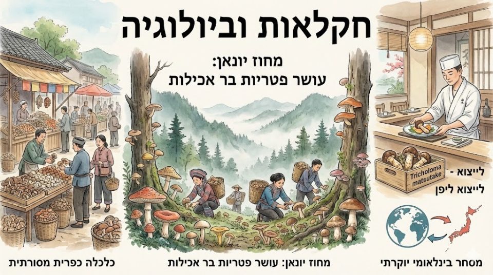 עושר ביולוגי זה מהווה בסיס לענף כלכלי חשוב המשלב איסוף מסורתי עם מסחור מודרני. פטריות הבר אינן מגודלות ברובן באופן חקלאי, אלא נקטפות מיערות טבעיים, בעיקר באזורים הרריים וביישובים כפריים של קבוצות אתניות. בשנת 2004 יוצאו מיונאן כ־7,744 טון של פטריות בר אכילות, אשר היוו כ־70% מכלל ייצוא הפטריות של סין, והפכו את המחוז לשחקן המרכזי בשרשרת הערך הלאומית והבינלאומית של תחום זה.