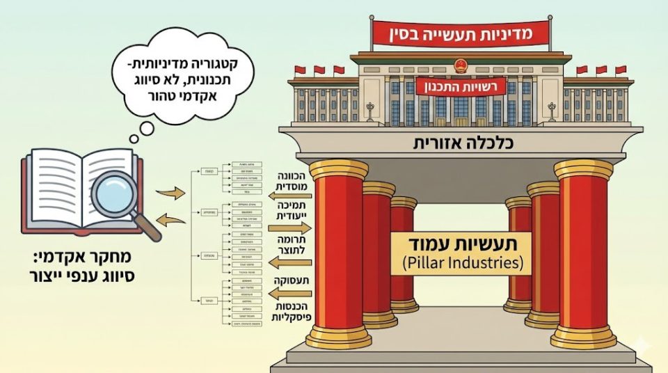 במחקר על מדיניות התעשייה הסינית מצוין כי המונח "תעשיות עמוד" ( (pillar industries אינו משקף סיווג אקדמי טהור של ענפי ייצור, אלא מהווה קטגוריה מדיניותית-תכנונית במהותה. מדובר בענפים או אשכולות כלכליים שהוגדרו על-ידי רשויות התכנון כעמודי התווך של הכלכלה האזורית, בשל תרומתם המשמעותית לתוצר, לתעסוקה ולהכנסות הפיסקליות, וכן בשל תפקידם המרכזי באסטרטגיית הפיתוח של המחוז. ככאלה, תעשיות אלה זוכות להכוונה מוסדית ולתמיכה ייעודית במסגרת מדיניות הפיתוח.
