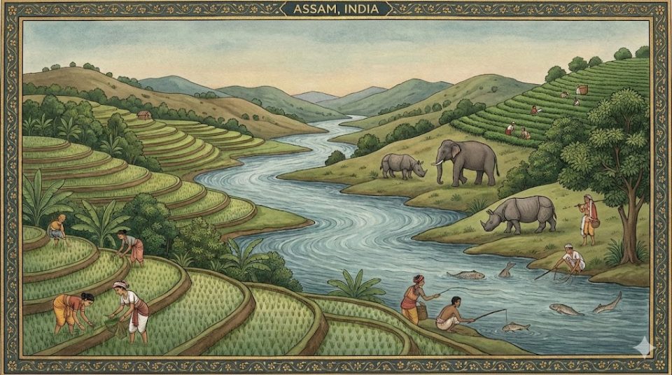 אסאם כולה, במבט גאוגרפי, היא ארץ של מפגש – בין הרים ומישורים, בין מים ויבשה, בין צפון לדרום, בין הודו "העיקרית" למרחב הייחודי של צפון־מזרח נהרותיה, גבעותיה ורמותיה אינם רק גבולות טבעיים אלא עורקי חיים ומסלולים של תרבות, מסחר וזהות. הגיוון הפיזיוגרפי שלה הוא שמוליד את עושרה האנושי, וממנו גם נובעת רגישותה – מדינה שתנודות הטבע בה חזקות ובלתי צפויות, אך גם מעניקות לה את יופייה הבלתי נדלה.