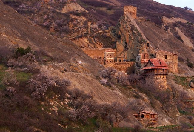 בנסיעה מטביליסי מזרחה מתחלף הנוף במהירות והופך ליבש מרגע לרגע. זהו אזור קָחֶטִי, שהוא המזרחי ביותר בגאורגיה וגובל באזרביידג'ן. בקחטי מייצרים יין מעשרות זנים של ענבים, כל כפר וההתמחות שלו. המשכנו מזרחה, ונסענו באזור צחיח לגמרי של סלעי אבן חול חומים, אדומים, צהובים, כתומים וכל מה שביניהם. בתוך הסלעים האלה נחצב במאה השישית מתחם מנזרים הנקרא דוד גרשה ((David Gardeza. הסלע החזק ומזג האוויר היבש הקפיאו את הזמן, והמקום נראה כפי שהשאירו אותו בוניו, לפני כ1,400- שנה. לפי המסורת, הגאורגים התנצרו בשנת 313, בהשפעת נינו – האם הקדושה של גאורגיה – שהגיעה מקפדוקיה שבאסיה הקטנה (טורקיה של ימינו) בעקבותיה המירו המלכה והמלך את דתם, אם כי חלקים מגאורגיה, ובפרט המושבות היווניות שלחוף הים השחור, התנצרו כבר במאה הראשונה לספירה. לקבלת הנצרות בגאורגיה, בתקופה כה מוקדמת, הייתה משמעות נוספת: הצטרפות למרכז הכוח הביזנטי שהשפיע מאוד על התפתחות התרבות הלאומית. המנזר הראשון נבנה בידי הנזיר דוד, אחד מ13- אבות המנזרים שהגיעו מסוריה והתיישבו במערה על מדרונה של גבעת גרשה. במשך הזמן התפתח המקום והפך יעד לעולי רגל, שהאמינו כי שליש מהאוצר הרוחני של ירושלים נמצא כאן. האגדה מספרת כי הנזיר דוד עלה לרגל לירושלים, אך לא היה מסוגל, נפשית, להיכנס לעיר. הוא החל לחזור לכיוון גאורגיה, כשרק שלוש אבנים מירושלים בכיסו. באותו לילה חלם מלך ירושלים חלום שמישהו לקח את השלום הרוחני מירושלים. חייליו צעדו בעקבות דוד, דרשו ממנו שתיים מהאבנים והשאירו לו אבן אחת, אותה לקח לגאורגיה. האבן נשמרה בקתדרלת ציוני בטביליסי, והיא נלקחת כל שנה בטקס דתי מיוחד לגרשה. בתקופה הסובייטית היה כאן מחנה צבאי, ומשום כך, אחת ההפגנות הראשונות בטביליסי, בתקופת הפרסטרויקה התמקדה בסילוק החיילים מהמקום. באופן אירוני, לאחר העצמאות, השתמש הצבא הגרוזי באזור לאימונים.