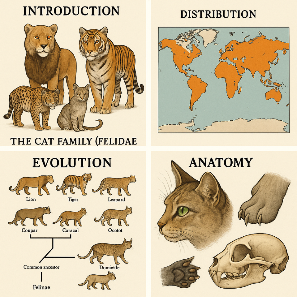 משפחת החתוליים, אותה קבוצה מופלאה של טורפים, שייכת לתת־סדרת דמויי החתול (Feliformia) – ענף שהתפצל לפני 50.6–35 מיליון שנה למשפחות רבות. החתוליים הם "אחות" למשפחת הלינסנג האסייתי[6], ויחד הם פרשו זה מזה לפני כ־35.2–31.9 מיליון שנה.