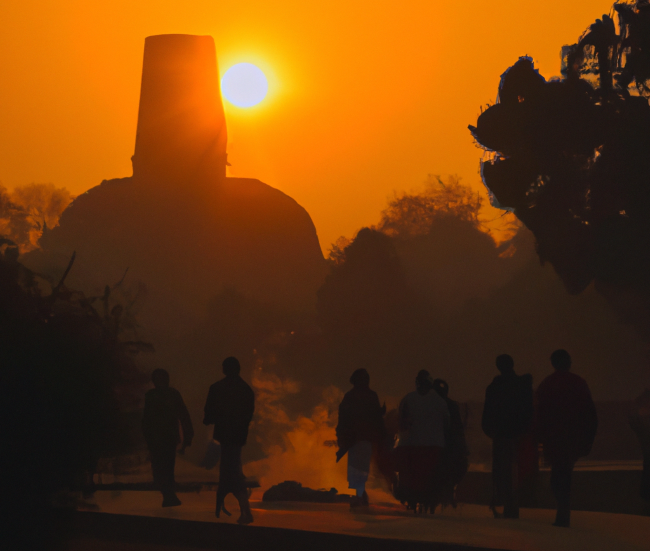 מכיוון שמטרתו העיקרית של טיול היא תמרורי חייו של הבודהה, התחנה החשובה היא סארנאת (Sarnath) הסמוכה. לאחר שבודהה זכה להארה בבודגאיה, הוא הגיע לסארנאת – שנקראה אז איסיפטאנה (Isipatana)- הנמצאת במרחק של 10 ק"מ מצפון-מזרח לואראנסי, בגן האיילים שבסארנאת אסף את חמשת רעיו מהעבר, ושם נשא את דרשתו הראשונה "סיבוב גלגל החוק", שהיא בסיס לדרכו, המאפשר להבין ולהתמודד עם הדֻקְּהַה (סבל, אי-מרוצות), שהוא גזירת גורל. בדרשה זו פרש בפני רעיו את ארבע האמיתות הנצחיות: ידיעת הסבל, מקור הסבל, היכולת לעקירת הסבל, והדרך לעקירת הסבל. עקירת הסבל עוברת בדרך המתומנת, שהעובר אותה משתחרר מההשתוקקות הגורמת לסבל. בשלב זה יכולה נשמת המאמין להשתחרר מכבלי הגורל והצורך לשוב פעם אחר פעם לחיים מלאי סבל, או להגיע לנירוואנה. בודהה בחר להישאר על פני האדמה ולהפיץ את תורתו החדשה. תוך זמן קצר הוא אסף סביבו קהל מאמינים ותלמידים רבים.