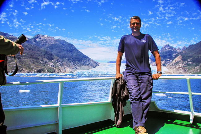 בעודנו מתבוננים-הוזים בקיר הלבן והמשונן שהתרומם מולנו, נפל לפתע גוש עצום של קרח, התרסק בקול אדיר וכיסה את המים שמסביב בכסות לבנה.  הגלים שזעזעו את הספינה "אמרו" לנו – זהירות!  יפה ככל שיהיה, זהו איננו פסל, אלא זה קרחון פעיל.  הקפטן, שבינתיים זכה לכינוי "זאב הים", התרחק מעט מן הקרחון, השליך עוגן והוריד אותנו לחוף, שם מצאנו בקתה קטנה בה התגוררו חוליו וחיימה, שומרי הפארק. השניים, עובדי רשות שמורות היער של צ'ילה, שהו במקום תקופה ארוכה ו שמחו מאוד לארח אותנו ולהפיג מעט את בדידותם.