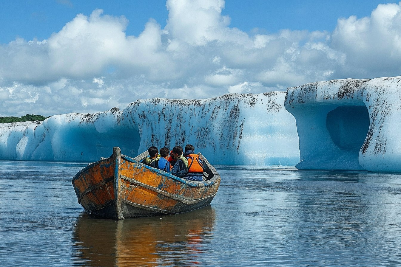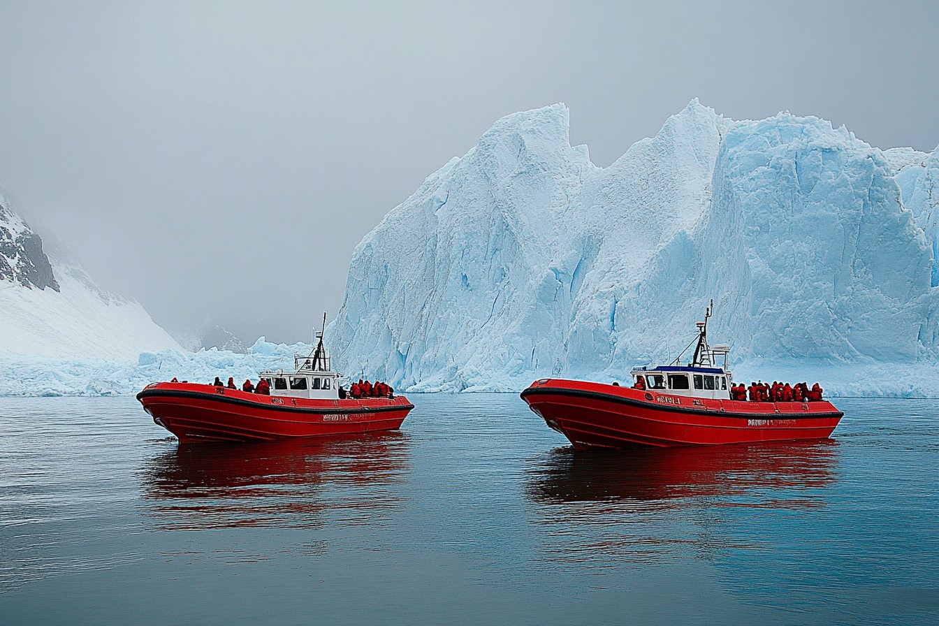 בצהרי היום השני למסע הבחנו בגוש קטן של קרח שצף במים. לא היה גבול למצהלותנו. ככל שחלף הזמן, הצטרפו אליו אחרים, אך התרגשותנו פחתה ביחס הפוך למספרם, שגדל והלך. הקרחונים הלכו ורבו, הלכו וגדלו ושרטטו צורות יפות על פני המים, כמו שרבוט של צייר, במכחול טבול בלבן, על פני לוח כחול. עד שהגענו לדבר האמתי אי אפשר היה לטעות במראה ההדור.  "סן רפאל" הוא קרחון הנמצא בקצהו של מפרץ סגור, מעין "לגונה", שבה צפים עשרות גושי קרח מרהיבי-עין.  חלקם גדולים בהרבה מן הספינה שבה היינו.