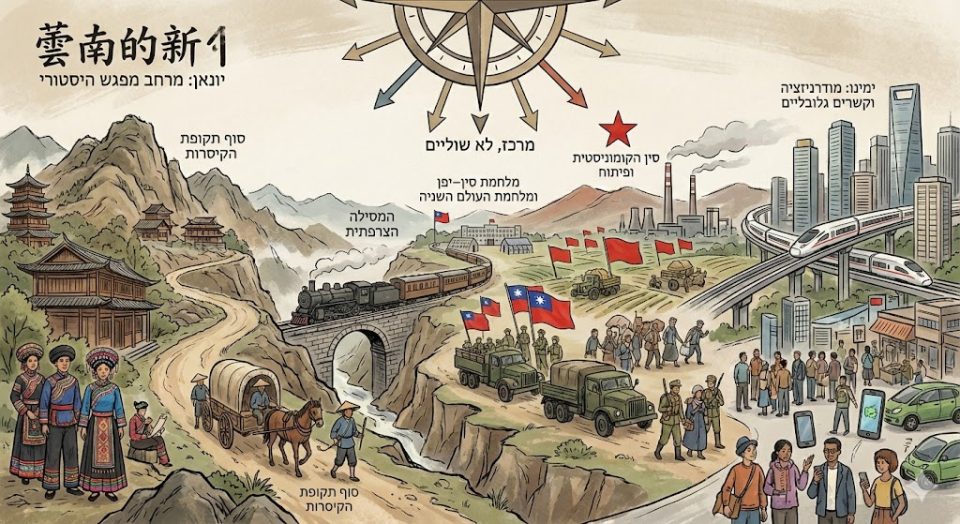 יונאן מעולם לא הייתה רק “שוליים” של סין. היא הייתה — ועודנה — מרחב מפגש דרמטי בין טבע קיצוני לאדם, בין תרבויות מקומיות עתיקות לאימפריות חובקות־עולם, ובין מסלולי מסחר, הגירה וכיבוש שעיצבו את דרום־מערב אסיה כולה. ההיסטוריה של יונאן בעת החדשה איננה סיפור של התקדמות ליניארית אל המודרנה, אלא רצף מורכב של חדירות חיצוניות, משברים גלובליים, הסתגלויות מקומיות וניסיונות מתמשכים של המדינה הסינית לעצב מרחב גבול רב־אתני בהתאם לצרכיה המשתנים. מן המסילה הצרפתית שחיברה את קונמינג לווייטנאם הקולוניאלית, דרך הפיכתה של יונאן לעורף אסטרטגי ולאינטלקטואלי במלחמת סין–יפן, ועד שילובה בפרויקט הקומוניסטי של פיתוח, שליטה וניהול זהויות — סיפורו של המחוז חושף כיצד מרחב שנתפס כמרוחק ושולי הפך לזירה מרכזית שבה נבחנים יחסי מרכז–שוליים, מודרניזציה, אתניות וריבונות. המאמר שלפניכם מבקש להתבונן ביונאן לא כפרק נספח בהיסטוריה הסינית, אלא כעדשה ייחודית להבנת סין המודרנית עצמה.