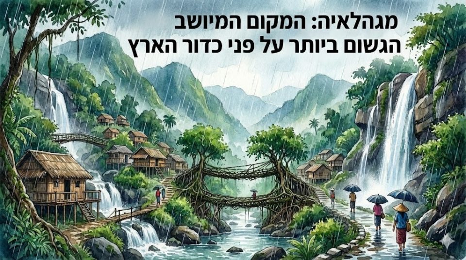 מגהלאיה היא המקום המיושב הגשום ביותר על פני כדור הארץ. כמות הגשמים השנתית הממוצעת באזור גבעות קהאסי הדרומיות מגיעה ממוצע שנתי של כ־11,800 מ״מ משקעים – יותר מפי עשרים מהכמות בישראל!