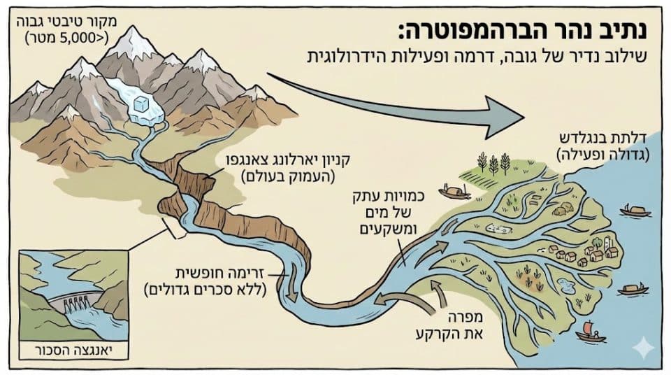 מעט נהרות בעולם יכולים להתחרות בדרמה הגיאוגרפית והעוצמה התרבותית של נהר ברהמפוטרה. הוא מתחיל את מסעו במרומי רמת טיבט הקפואה, חוצה את הקניונים העמוקים ביותר על פני כדור הארץ, זורם דרך עמקים ירוקים ופוריים, ומסתיים בדלתא העצומה של מפרץ בנגל. לאורך מסלול של כ-3,000 קילומטר, הנהר חוצה ארבע מדינות ומשפיע על חייהם של למעלה מ-80 מיליון בני אדם. זהו נהר של קיצוניות: התשיעי בעולם בספיקתו, החמישה עשר באורכו אך גם אחד המסוכנים בשיטפונותיו; עורק חיים למיליונים, אך גם כוח הרס בעונות גשם.