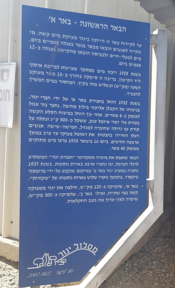 בהמשך נחפרו בארות נוספות באקוויפר שכונה “תצורת יגור”, המשתרע למרגלות הכרמל. בתוך כמה שנים נוספו ארבע בארות נוספות, ששיפרו את אספקת המים והרחיבו את אפשרויות הפיתוח החקלאי. בשנת 1937 נחפרה באר נוספת ליד הבלוקים, במסגרת תכנון מפעל השקיה מרכזי לעמק יזרעאל המערבי ביוזמתו של לוי שקולניק (אשכול) ועל פי הצעתו של המהנדס שמחה בלאס[24]. באותה שנה ובשנה שאחריה, החל בלאס לתכנן את התוכניות הראשונות של חברת "מקורות", שהוקמה לאחר ב-[25]1937. הקמת החברה סימנה מעבר מתפיסה מקומית ומפוזרת של אספקת מים, לתכנון אזורי וממלכתי יותר, שנועד לתמוך בהרחבת ההתיישבות החקלאית[26]..