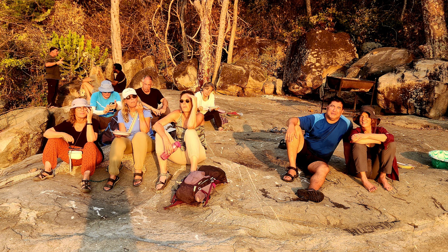 בשעת בקר מוקדמת טיפסנו על Nkhunguni mount. הר המזדקר מעל קייפ-מקלייר. בדרך עברנו ליד מצבה המציינת את המיסיונרים הראשונים – אלה שתרמו לבריאותם ולהשכלתם של המקומיים, אך גם פעלו באופן נמרץ לבער את אמונתם ה"פרימיטיבית". בהמשך סלעי גרניט ענקיים, בולדרים אדירים שיצרו מחסה דמוי מערה, שעל קירותיו צוירו נושאי תרבות קדומה, סירות דייגים. כנראה עדות לטקס שמאניסטי. המשכנו לטפס, כשאנו מגירים זיעה. הטיפוס עצמו אינו קשה, אך החום והלחות מכבידים. משקפי השמש מתכסים תכופות באדים. המדריך המקומי מזהיר שלא להסיר את המשקפיים, המגינות על העיניים לטענתו, מיריקות של נחשים… פגשנו את עץ ה-Mpoloni (Steganotaenia araliacea), המבטיח הגנה למי שנושא את עליו בכיסו.