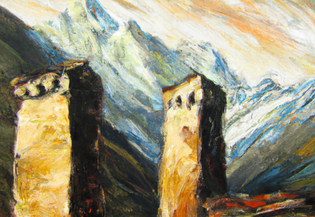 יצאנו לטיול ברכבי שטח, נהוגים על ידי בני דור צעיר, שהחליף דור האבות זעופי הפנים. הם מבינים לליבו של התייר ויודעים לעצור לתצפית היכן שצריך. נסענו ועצרנו, מתפעלים מההרים המושלגים העוטרים את הנוף, כמו מסרק לבן ומשונן. לעתים נראה ריכוז צפוף של מגדלים בעמק ולעתים נראו מגדלים בודדים, נעוצים במעלה ההר, על מדרון תלול, שמעוררים השתאות לא רק בשל יופיים, אלא בשל המאמץ הנדרש להגיע אליהם. מגדלי האבן, בעלי חתך רבוע וגגות של צפחה, דומים כל כך זה לזה, אבל לא התעייפנו מלהתבונן בהם ולצלמם כאחוזי תזזית. מעת לעת נראה איכר החורש את שדהו במחרשה רתומה לשוורים, או מזרה את גדעיני החיטה מול הרוח. לצד הדרך המתפתלת ניצבות גדרות, שמאחוריהן ניצבות הנשים הסוואנטיות, מבטן עז ומעדרים ארוכים בידיהן.