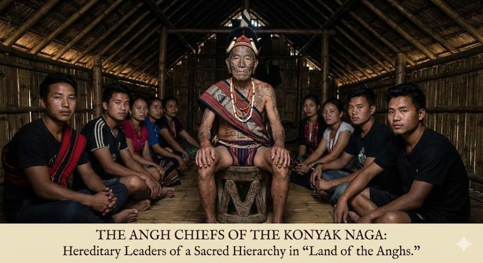 בשונה במעט משבטי נאגה אחרים בעלי מבנה מלכותי אך דמוקרטי יחסי, חברת הקוניאק היא היררכית ואוטוקרטית. בראשה עומדים ה"אנגים"(Angh) ,[8] צ'יפים שבטיים העוברים בירושה מאב לבן. בראש ההיררכיה עומדים "האנגים הגדולים", הנחשבים לדמויות מקודשות ובעלי דם טהור. על שמם מכונה האזור, משני עברי הגבול "ארץ האנגים". מבנה זה יצר חברה מרתקת בה התבדלות המעמדות הייתה ברורה וחדה. האנגים הגדולים החזיקו לעתים בנשים רבות – פרקטיקה המבטאת עושר, כוח ומעמד – בניגוד לפשוטי העם שהיו מונוגמיים. המערכת ההיררכית התבטאה גם בזכויות על האדמה, ביכולת לארגן פשיטות ומלחמות, ובשליטה על טקסים ופולחנים.
