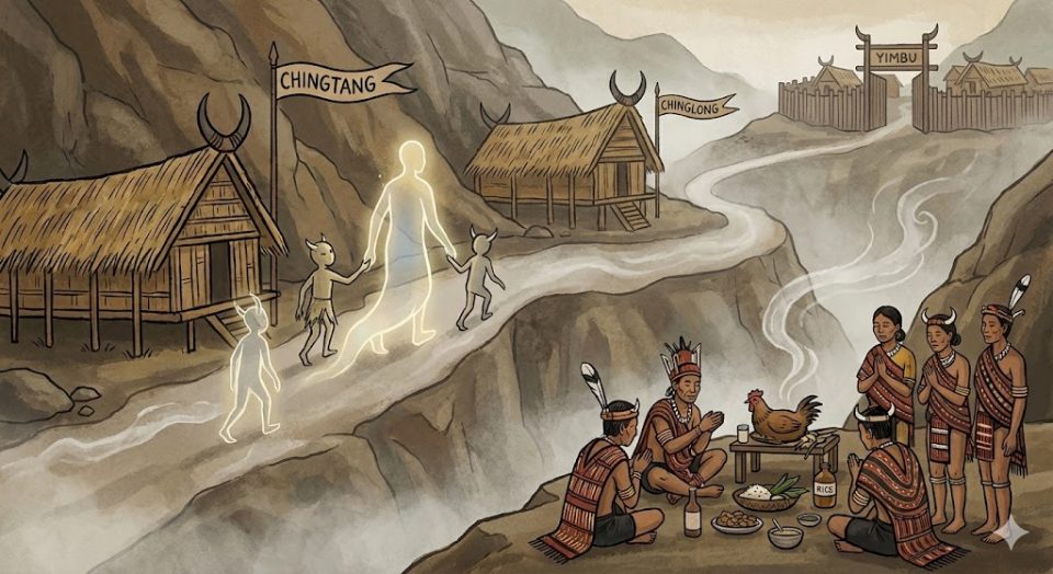 הקוניאק האמינו בקיומה של ארץ המתים המכונה יימבו (Yimbu) נשמתו של המת יוצאת למסע רוחני ועוברת דרך כפרים ספציפיים (כמו Chingtang ו-Chinglong) בדרכה לעולם הבא. המסע הזה לא היה אוטומטי וקל נדרשו טקסים נכונים, קורבנות ופולחנות כדי להבטיח שהנשמה תגיע בשלום ליעדה.