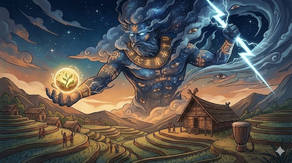 לקוניאק אין סיפור בריאה אחיד לכל השבט, אלא מסורות המשתנות בין כפרים וקלאנים. שלושה המיתוסים המרכזיים והמרתקים ביותר הם: