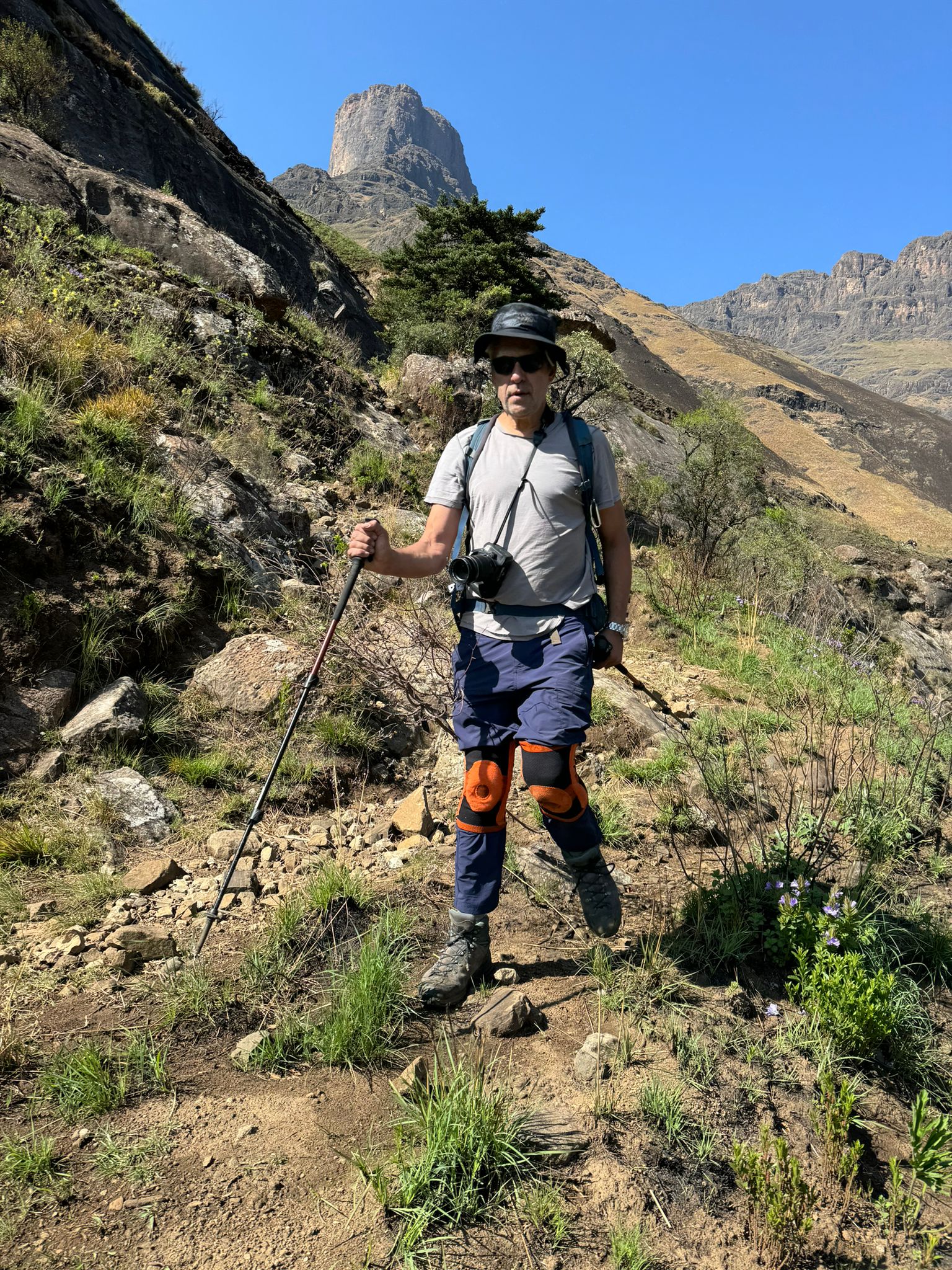 הנוף היה צחיח להפליא, אך בשלב זה כבר למדנו לאוהב אותו. עם הירידה, הופיעו צמחים עשבוניים הנקראים Tussock grass ואחריהם הופיעו שיחים קטנים שנקראים Erica ולהם פרחים ורודים.