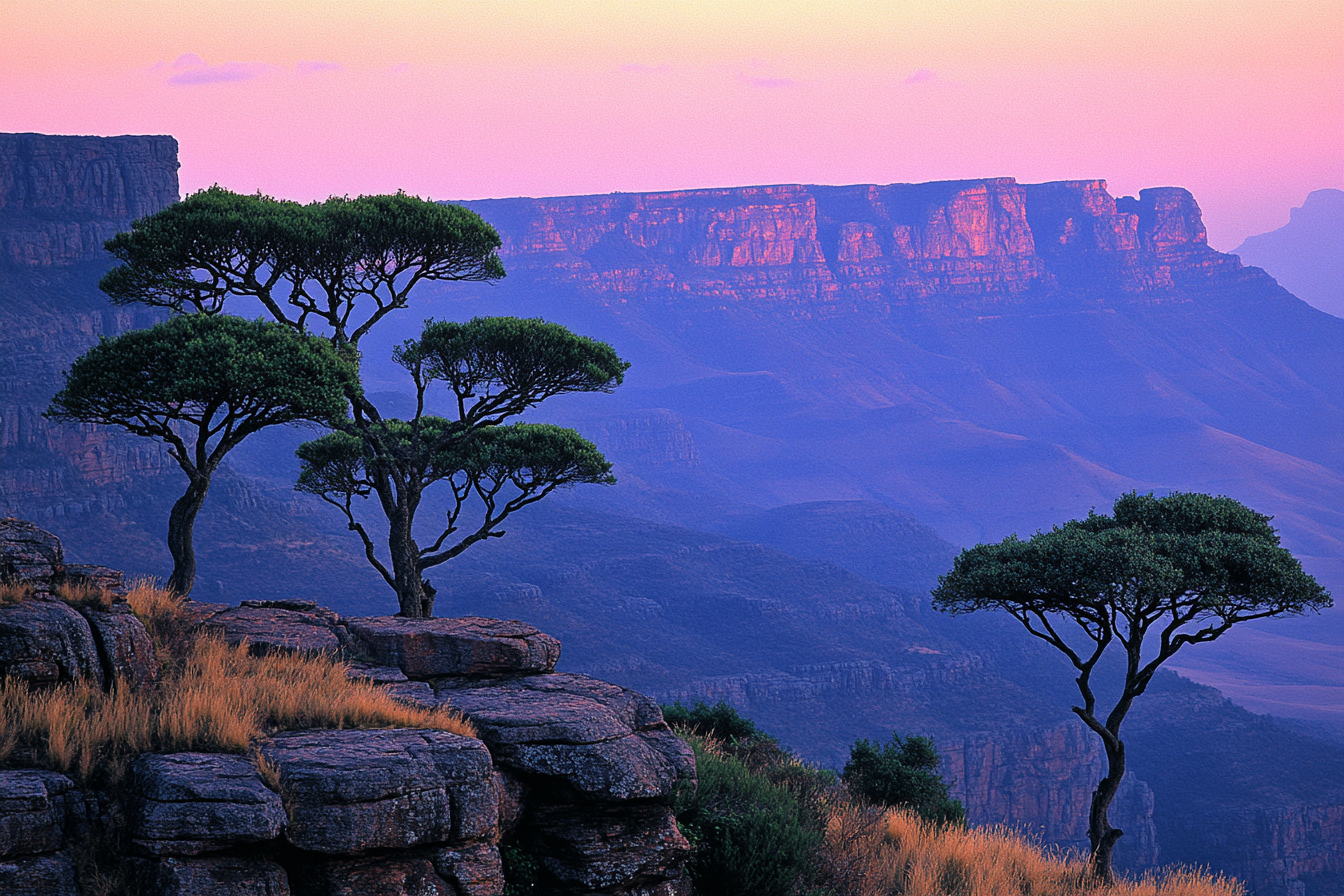 הרי דרקנסברג בפריחה. (AI)קניון נהר בלייד (Blyde River Canyon) במפומלאנגה (Magaliesberg.), הוא באופן טכני חלק מהדראקנסברג על אף שהגאולוגיה שלו שונה בתכלית משאר הרכס, בשל העדר פסגות הבזלת האופייניות להרי הדראקנסברג.